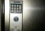 등록된 터치키를 동그란 부분에 갖다대면 문이 열려 비밀번호를 누르기 않고 키터치만으로도 출입할수 있습니다