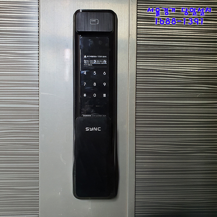윗부분에 등록해놓은 카드키를 접촉해서 인증하거나 비밀번호를 눌러서 열수있어요