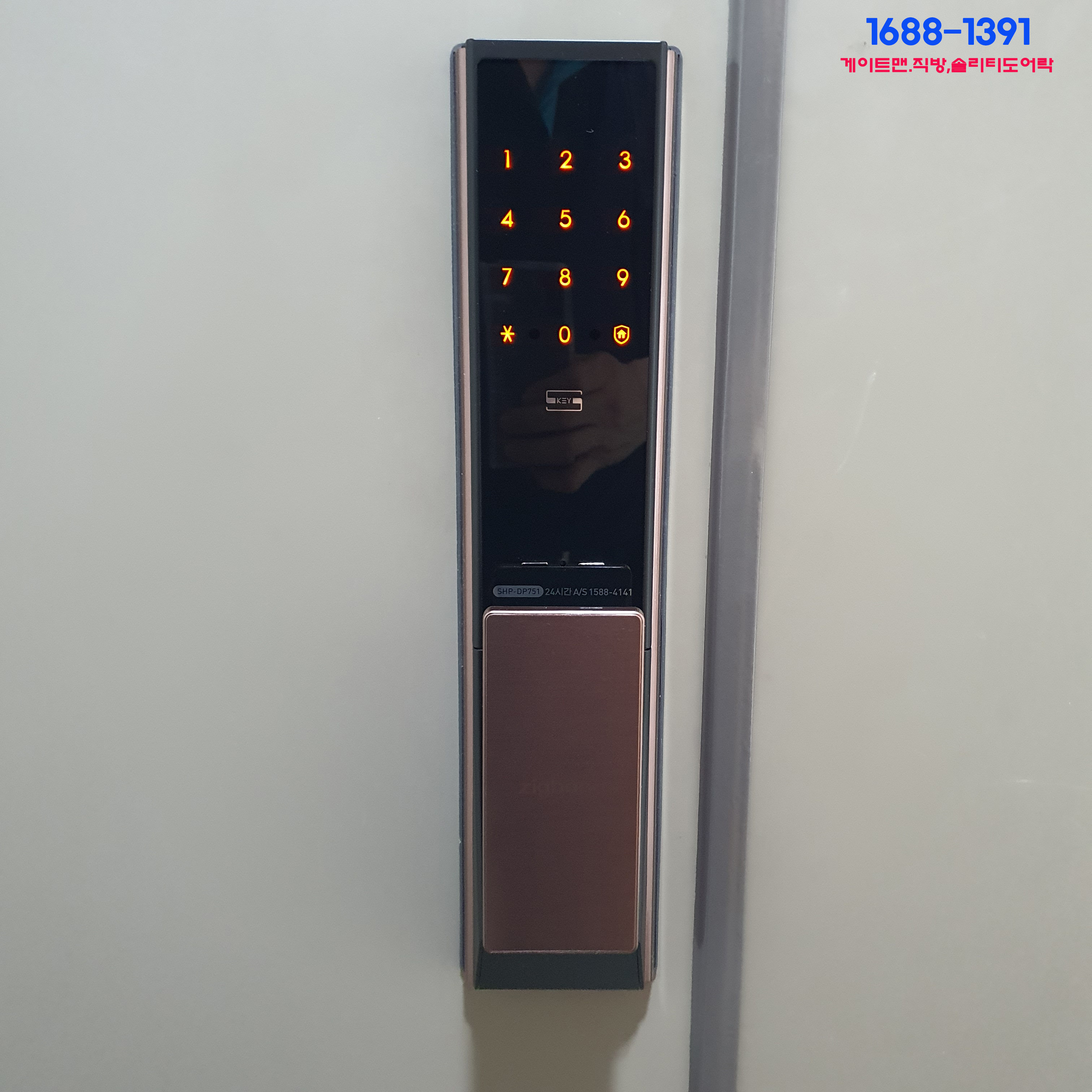 직방푸시풀도어락중 비밀번호와 카드로 이용가능한 코퍼컬러 색상을가진