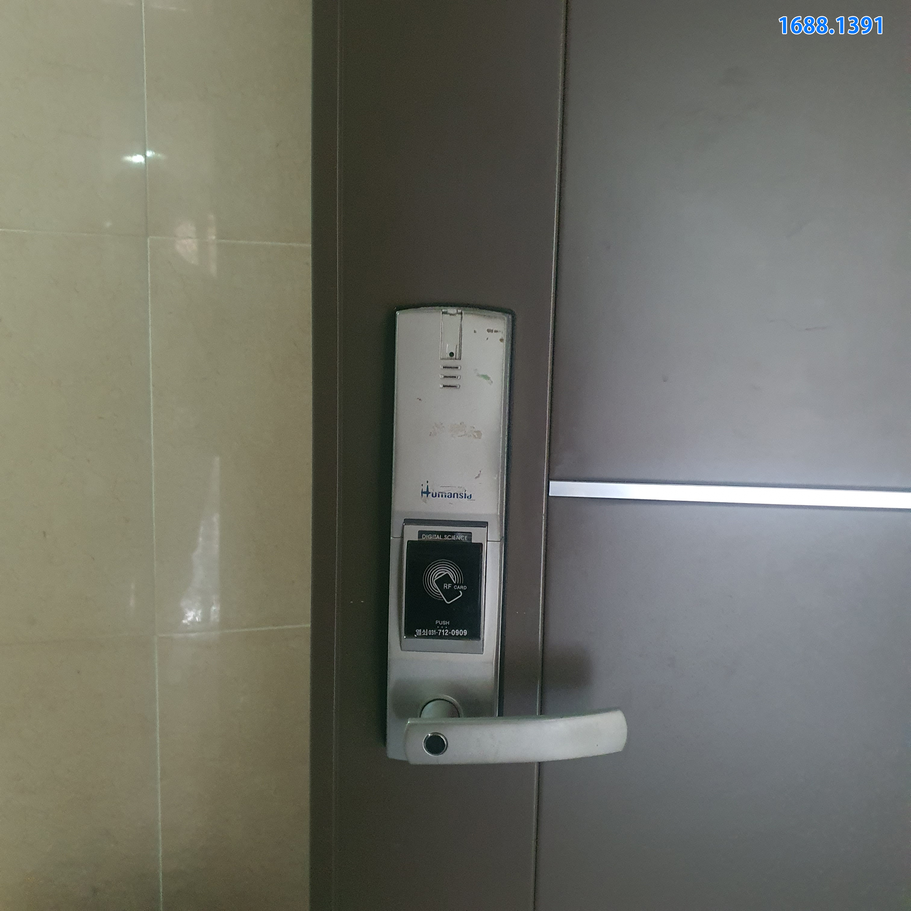 홈쇼핑에서 판매된 라오나크 푸시풀형 지문인식도어락 시공의뢰로 출장설치