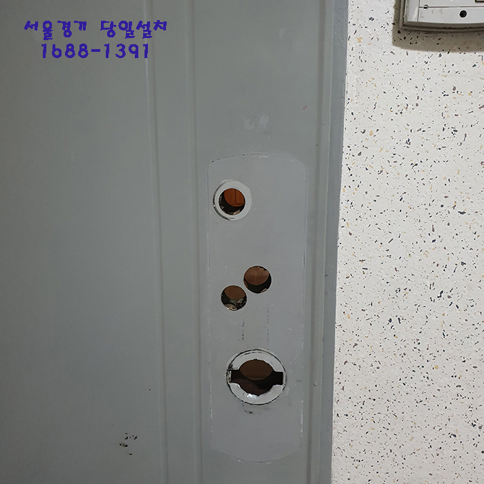 고장나서 열리지않는 도어록을 파손하여 구멍만 뚫려있는 상태였어요