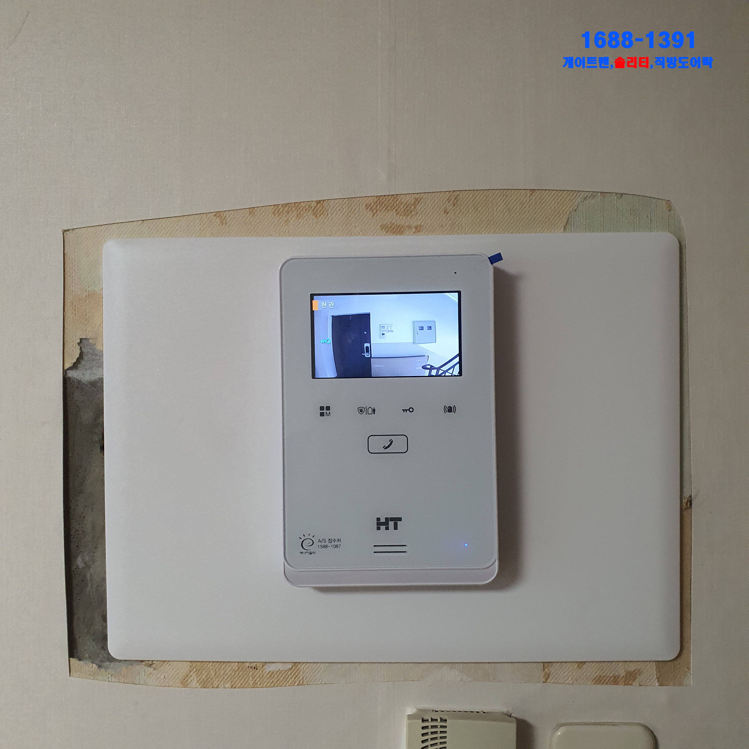 오늘처럼 본체 마감판으로 가리고 그위에 주문하신 현대비디오폰을 거치하는 과정으로 작업이 진행됩니다