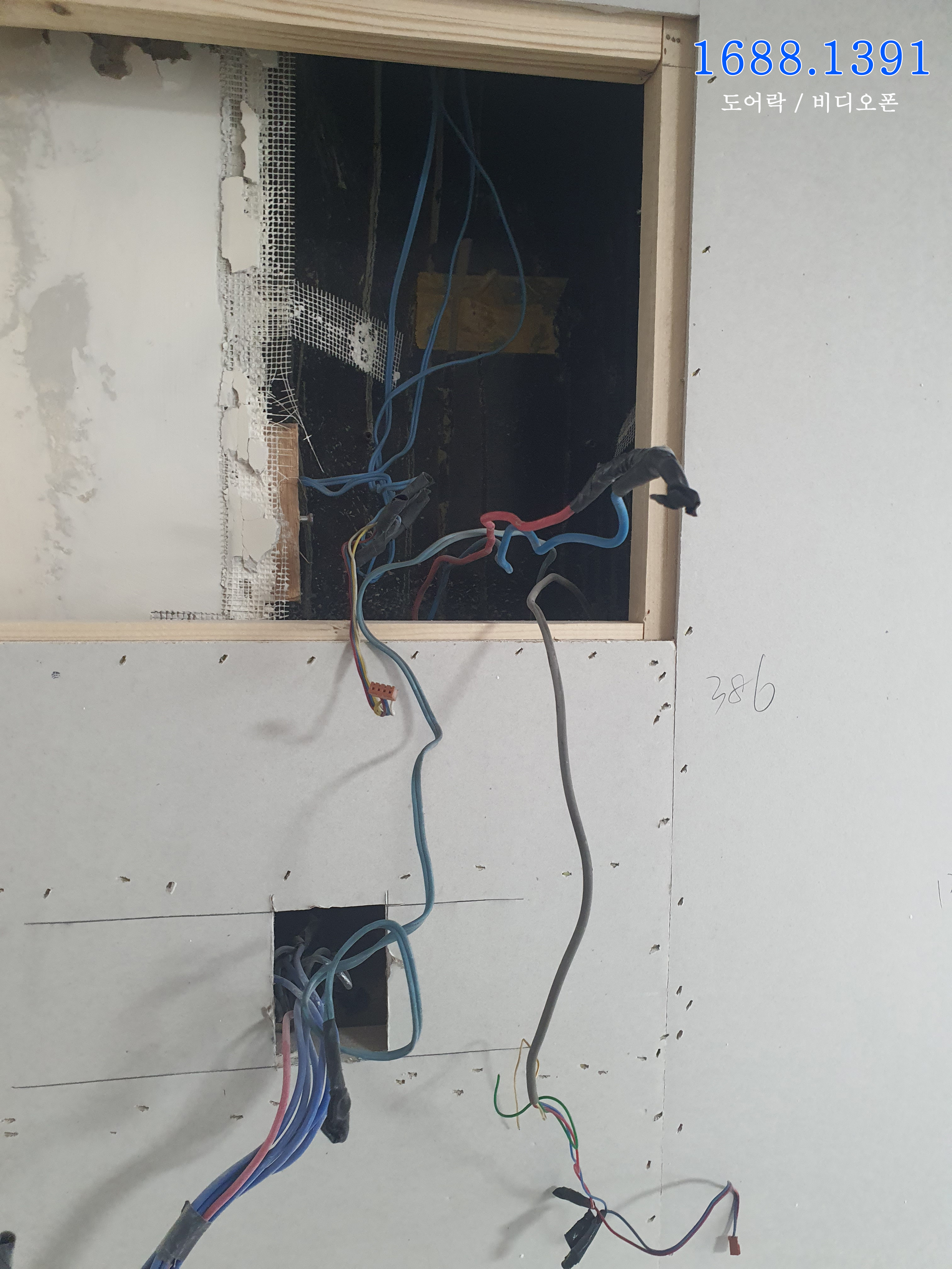 이전에 부착되어 있던 구형 비디오폰을 목공 작업하면서 탈거를 했고